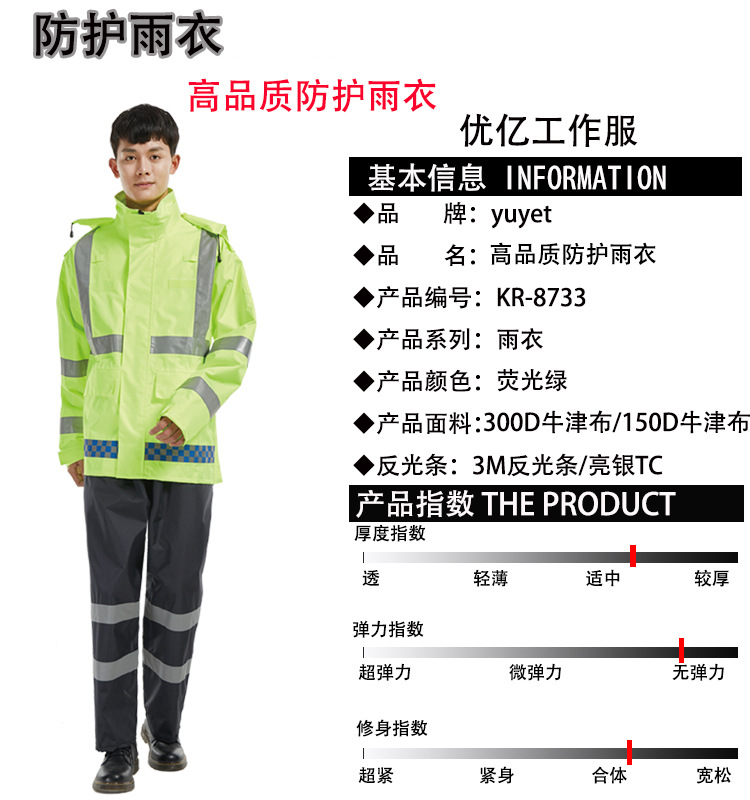 高品质户外高速路政交通执勤巡逻分体雨衣套装荧光黄绿反光雨衣