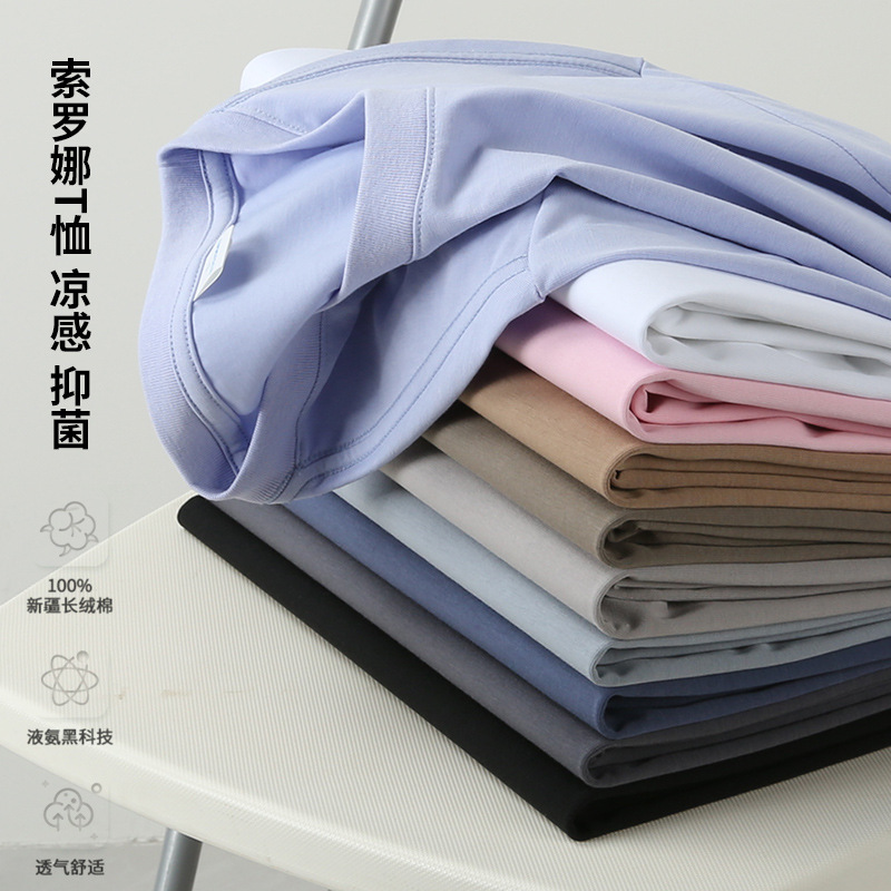 短袖T恤圆领宽松纯色T恤舒适抗菌Polo衫男女通用款