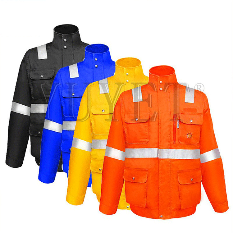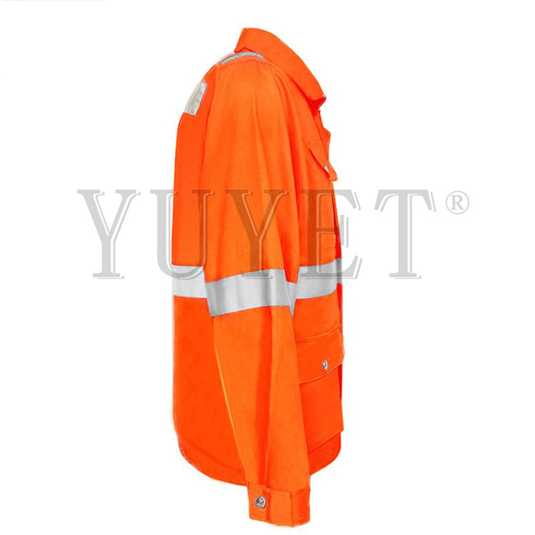 LA认证工厂订做芳纶3A永久阻燃防静电耐磨防酸碱反光桔红色防护服