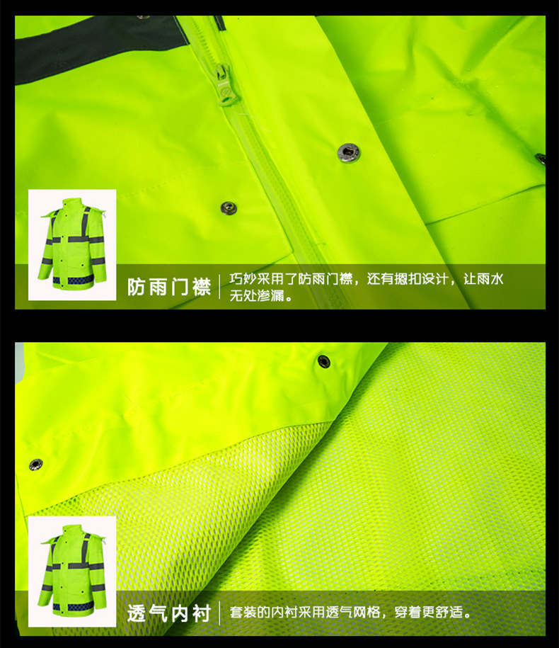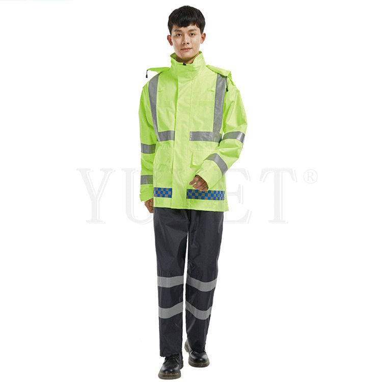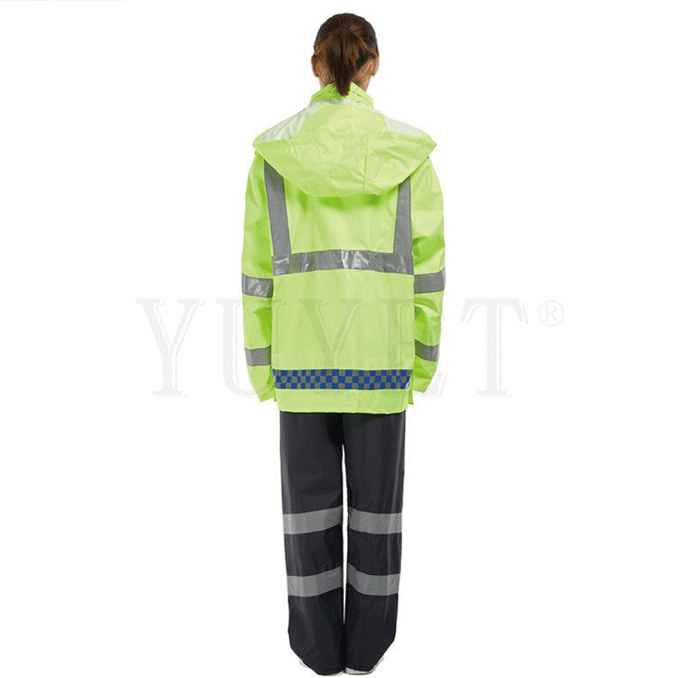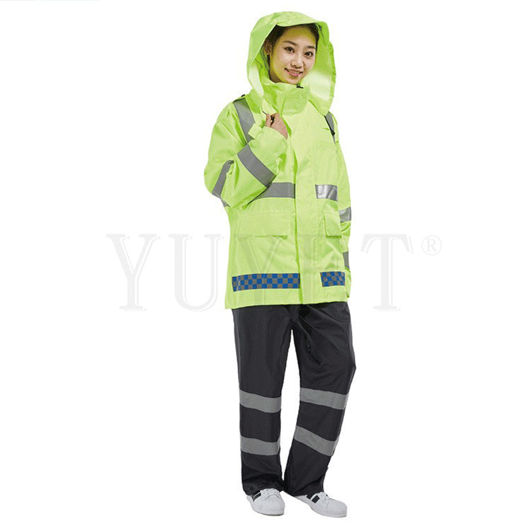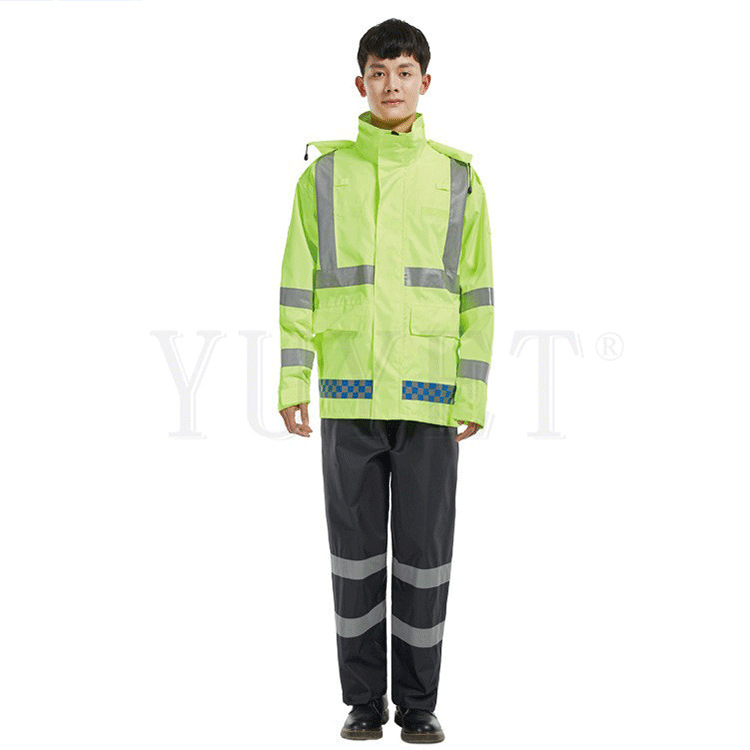 高品质户外高速路政交通执勤巡逻分体雨衣套装荧光黄绿反光雨衣