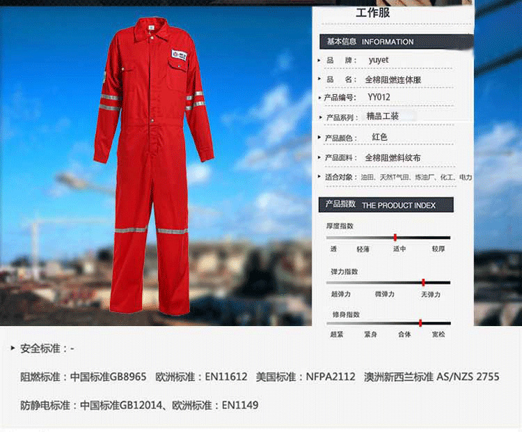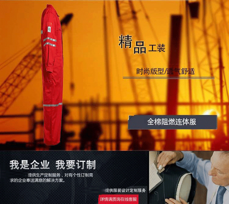 厂家直供棉阻燃连体服专业生产连体工作服来样加工防火防护服