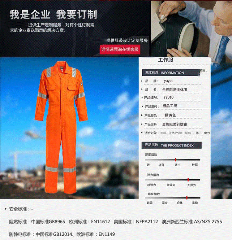 厂家直销纯棉阻燃防护服连体防火服静电保护连体防护衣