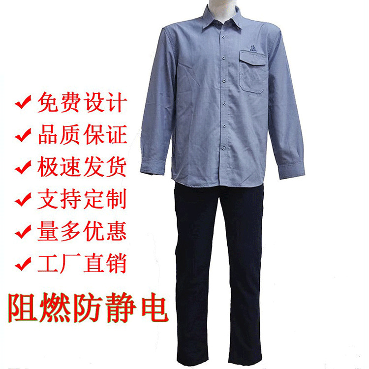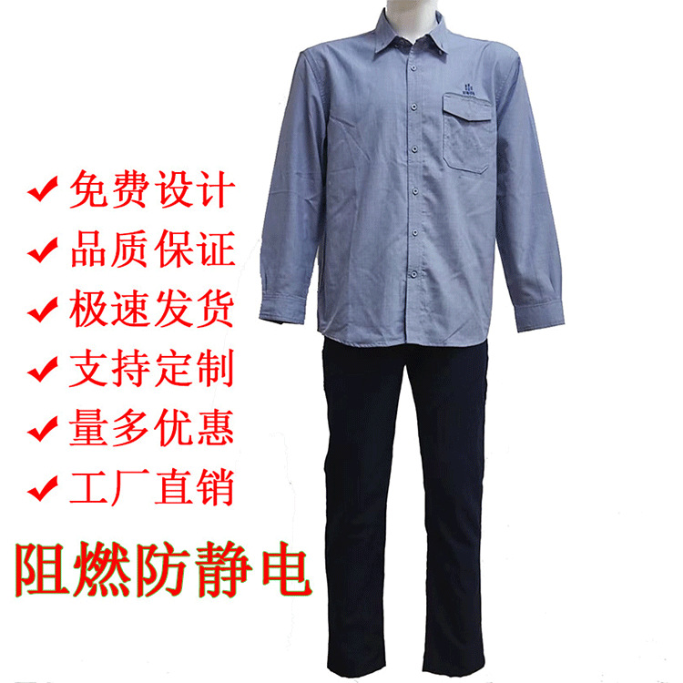 定制加工电力工作衬衣阻燃防静电防火防酸碱防水套装防皱免烫