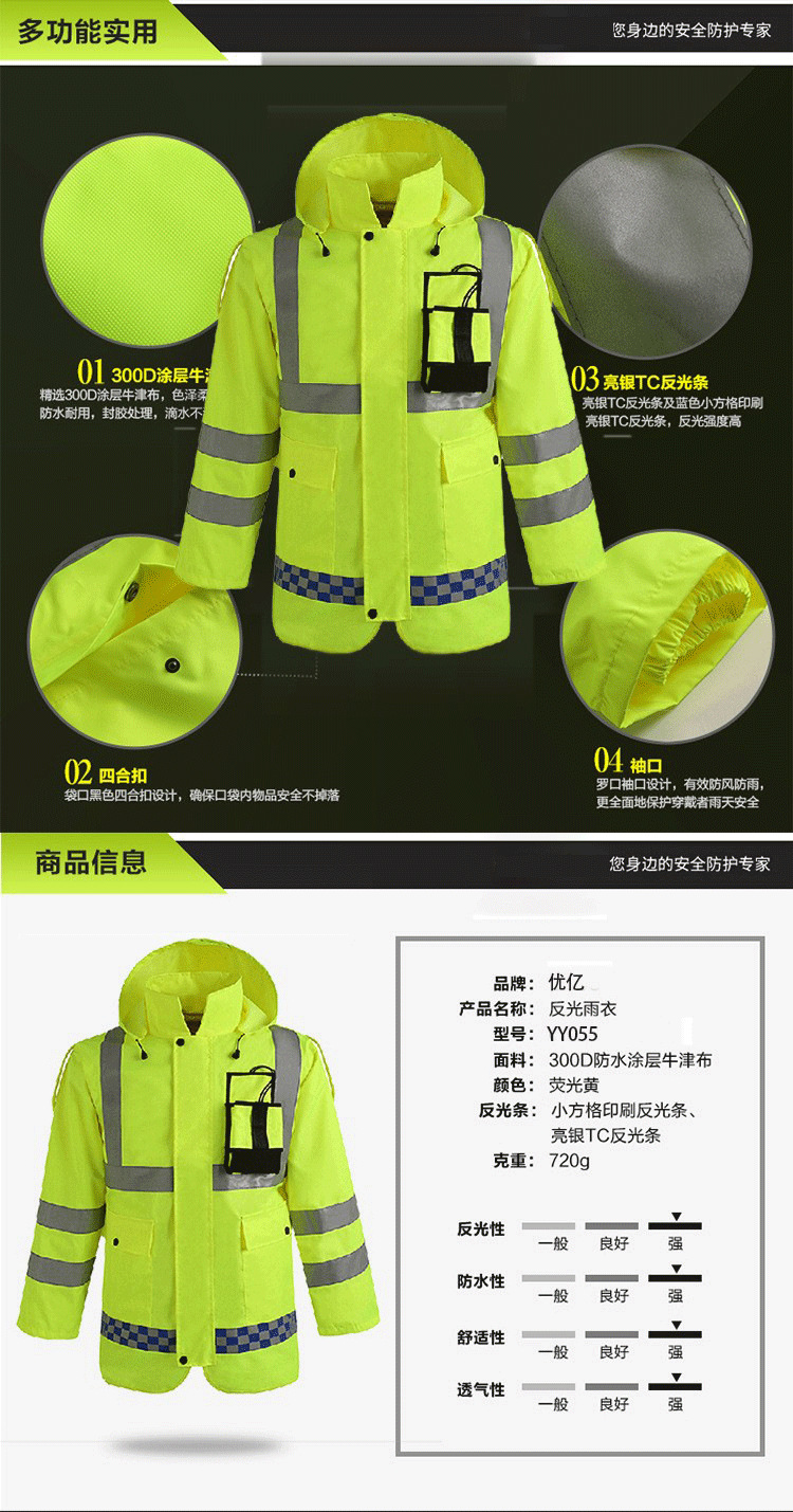 厂家加工定制反光雨衣交通执勤服反光荧光雨衣批量定做原厂直销