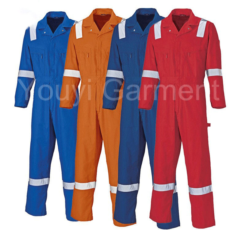 优亿厂家定制芳纶3A高亮反光警示连体服阻燃工作服防静电劳保服